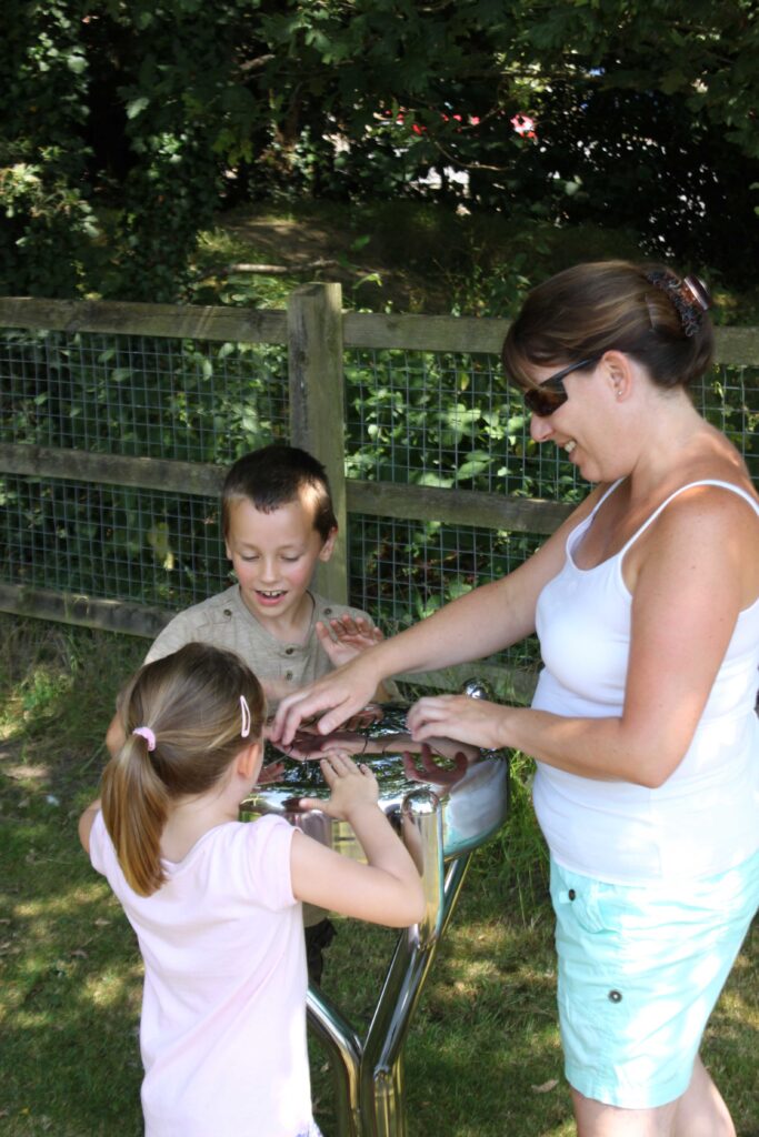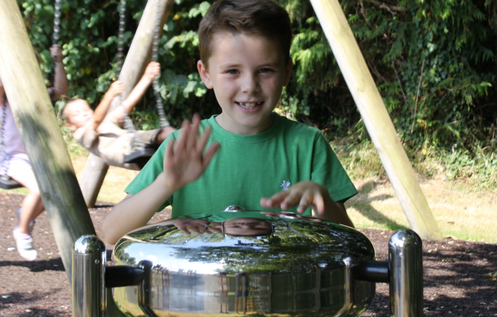 The platform rotates around the axis allowing the children to accelerate with their hands.