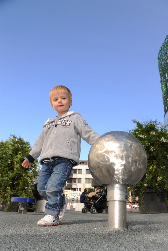 The cluster of six powder-coated conical ‘caps’ in bright colors and wiggly-shaped stainless steel ‘stems’ positioned at different heights and angles is an eye-catching piece that will quickly become an instant favorite.