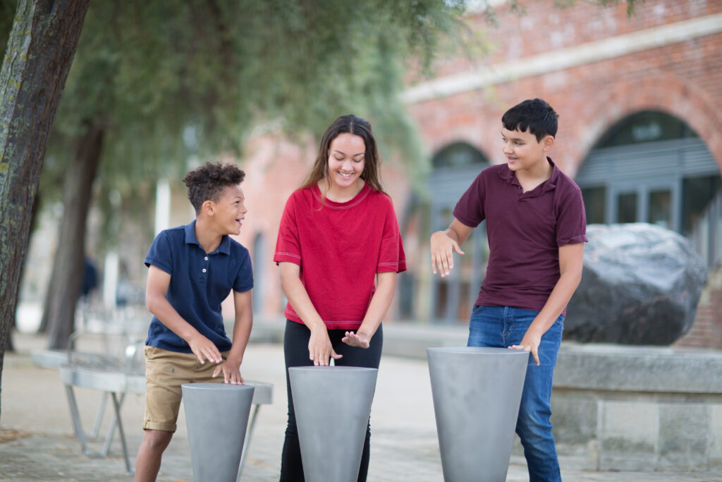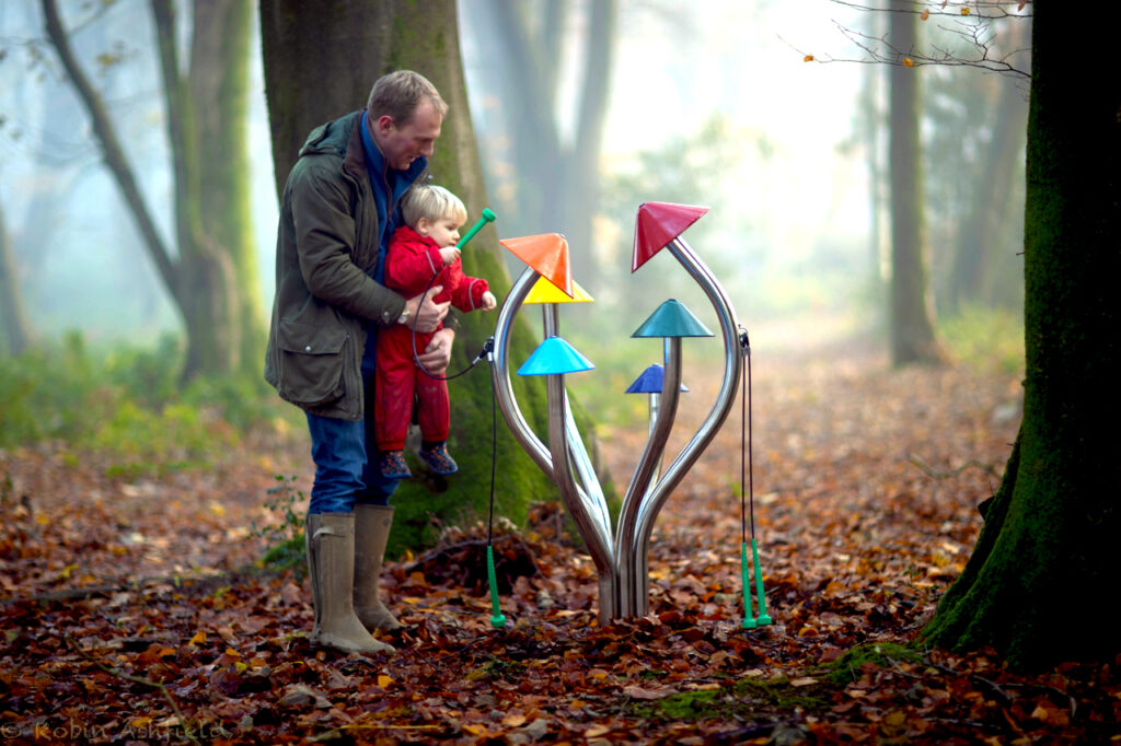 Expertly crafted, the aluminum musical bells, tuned to the pentatonic c-major scale, ‘sing’ when struck with the attached mallets. The stainless-steel ‘gill’ on the underside of the cap completes the look.