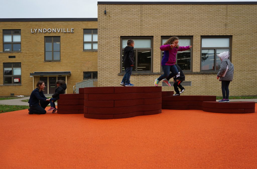 Modular rubber C and S shaped blocks, designed by Coryn Kempster and Julia Jamrozik. The blocks can be designed as seating and gathering areas, partitions, jumping and climbing equipment, or anything else they can dream up. Available with or without EPDM. See EPDM Color Chart for color options.
