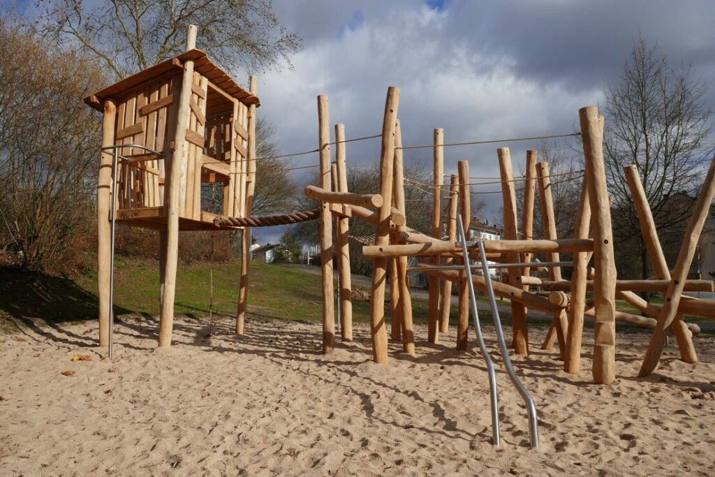 The Timber Treetop climber is the perfect way to introduce children to the natural environment. The Timber Treetop, a durable and long-lasting climbing structure, is supported by hardy Robinia wood beams. Its appealing aesthetic invites children to explore and ascend the structure onto the climbing cable-net, offering various play options. These options, from the sliding pole to the rope climbing elements, cater to different children’s needs and interests, keeping them engaged and aiding their physical and social development. The design enhances spatial awareness, making the play experience enjoyable and encouraging children to extend their playtime and return for more.