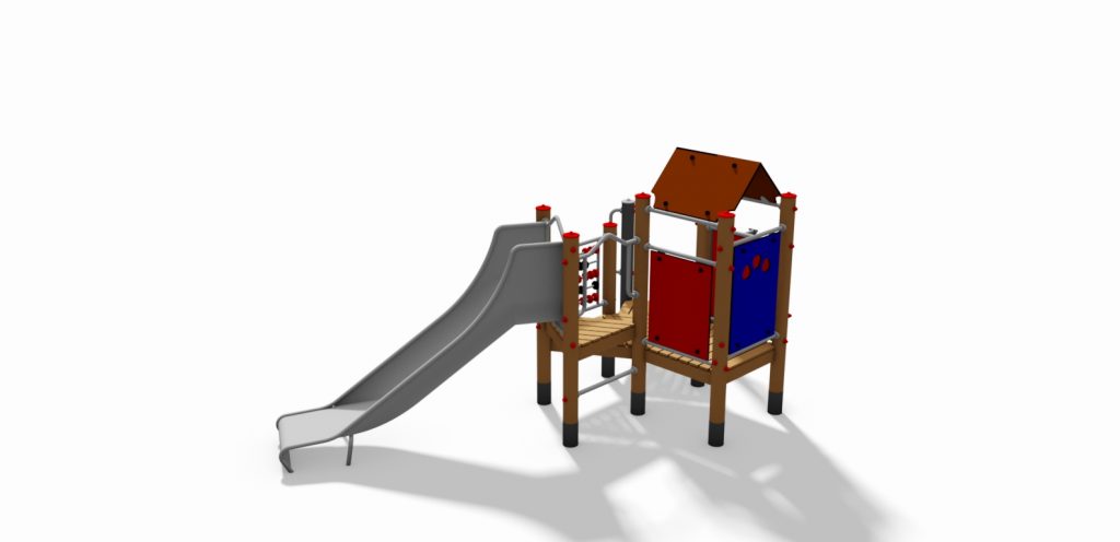 The toddler unit includes every element that littles love: steps, a lookout, a platform protected from the elements, and of course a slide—all scaled down to manageable size. Young children and toddlers (age 2 and up) will be perfectly at home playing and exploring on equipment designed for smaller adventurers.