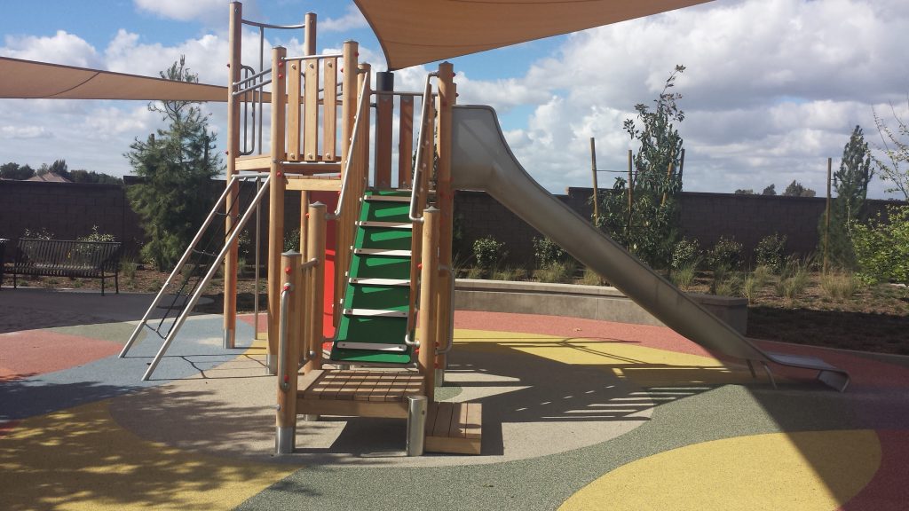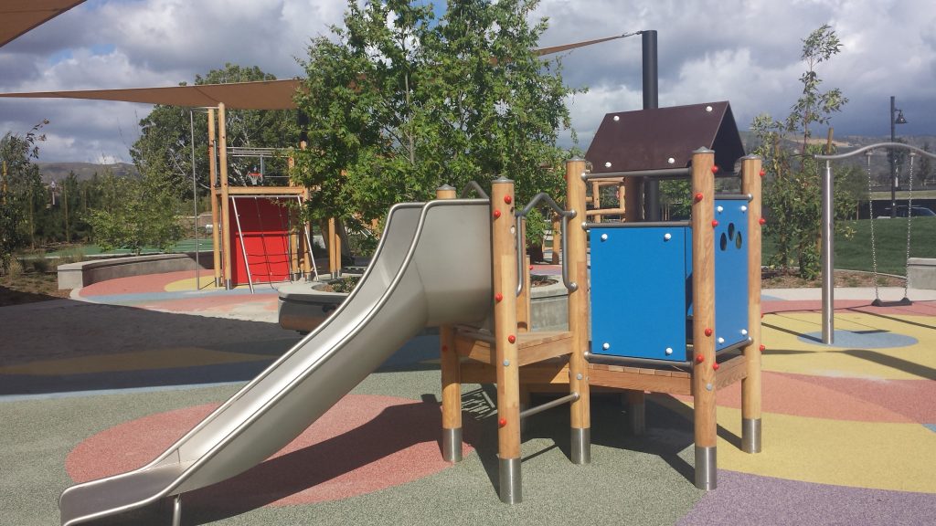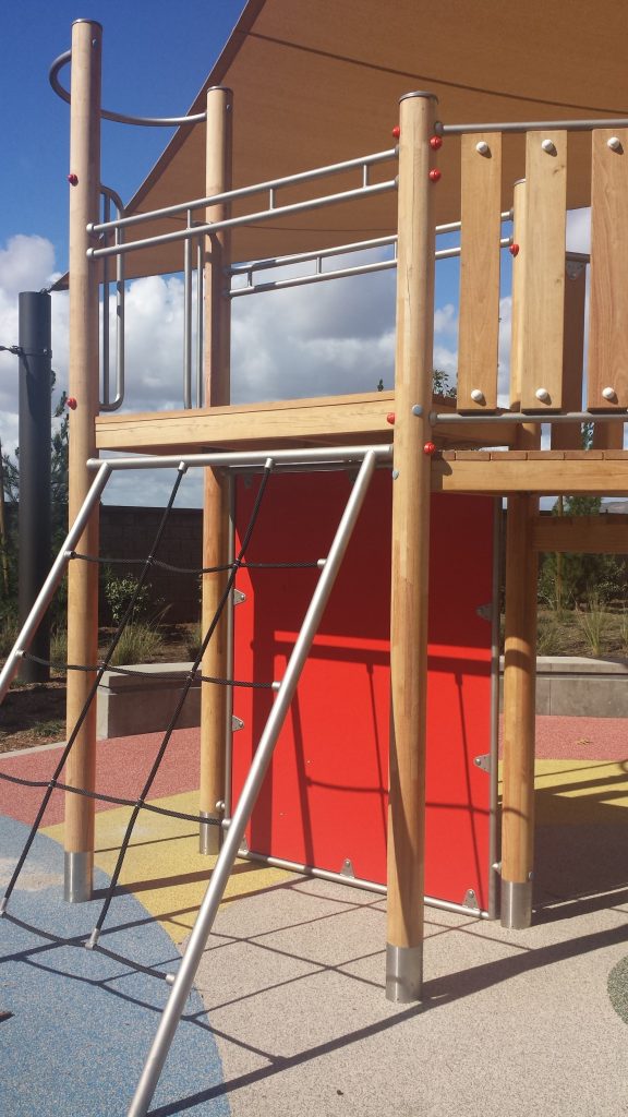 Big, wide platforms steps, fun tactile elements, a clubhouse style top-platform with protection from the sun and rain, and a slide that entices young children and toddlers (age 2 and up) to come and play – the K&K South Park, young children truly is a great introduction to everything a fun and developmentally beneficial playground can be.