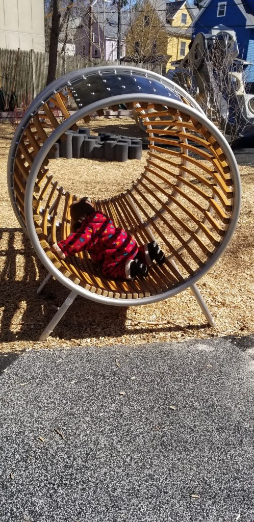 K&K Moab features a design that completely captivates young children and toddlers (age 2 and up). The fun-filled and self-contained structure also offers plenty of playful opportunities to engage both minds and bodies with different modes of climbing up to the top of the short tower, and a wide gently-sloped slide.