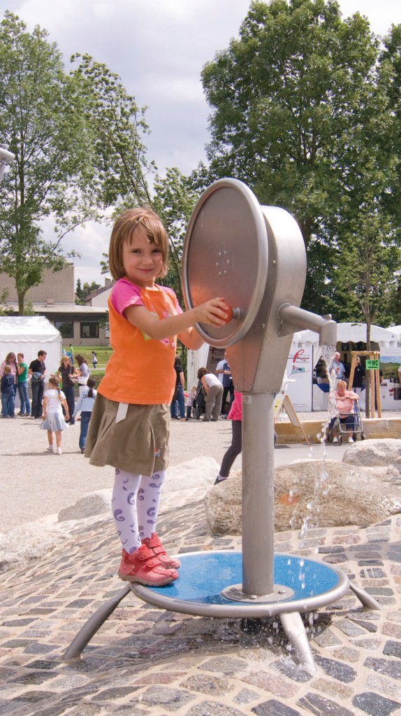 The ultimate in water playscapes, Cascade’s two pumps are the source of water for half a dozen basins, as many troughs, and endless hours of fun. The elements of this extensive water play system are spread out over a large area on various levels—perfect for entertaining large groups of children with complex play. An Archimedes screw, trough dams, water wheel, funnel, water seesaw, and swirl table provide sophisticated opportunities to engineer with water and to observe its kinetics. Kids of all ages and abilities are encouraged to interact with water elements and each other, building communication skills and logical reasoning. Self-guided solo play and coordinated group play can occupy different units simultaneously in this fantastic, diverse playscape.