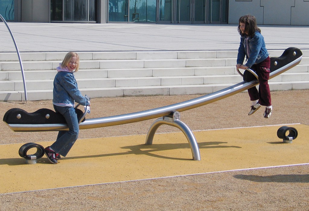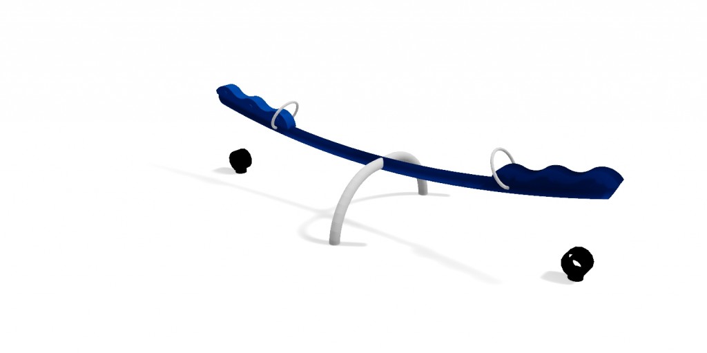 This double-seater version of the traditional see-saw allows two playground buddies to sit together, and parents or other caretakers to sit comfortably with their children. Increased opportunities for intergenerational fun, and an expanded need for cooperation among multiple children, makes the Rodeo a excellent addition to indoor playscapes and outdoor playgrounds. The rubber bumpers provide a pillow-soft landing, and the actual design has 2 handles on each end.
