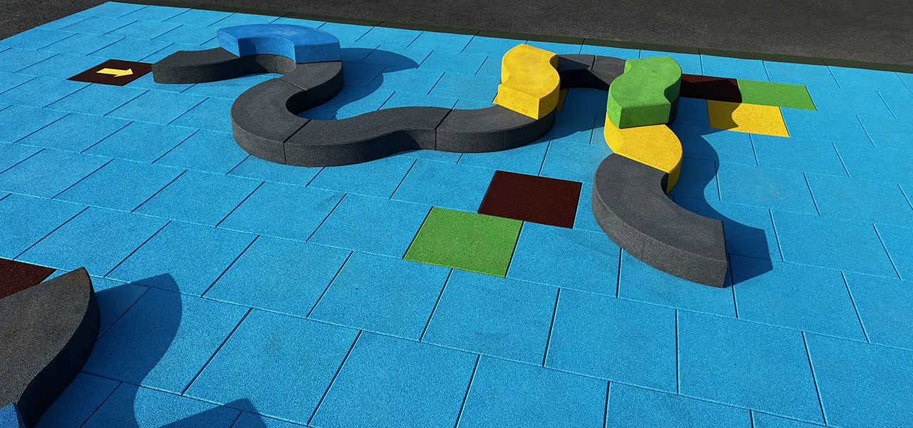 Modular rubber C and S shaped blocks, designed by Coryn Kempster and Julia Jamrozik. The blocks can be designed as seating and gathering areas, partitions, jumping and climbing equipment, or anything else they can dream up. Available with or without EPDM. See EPDM Color Chart for color options.