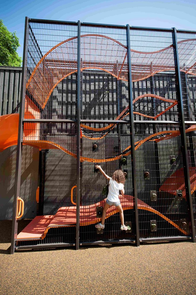 With the multi-activity and space-saving attributes the Wallholla is ideal for city environments that don’t have the space for the large footprint of traditional playground equipment.