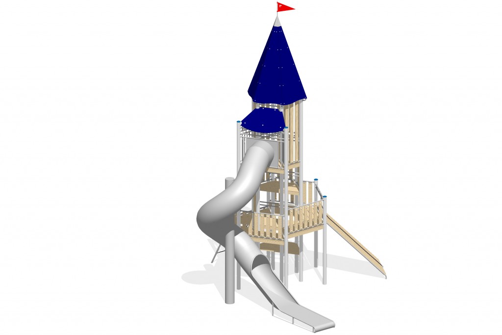 Getting to the top is almost as fun as sliding back down with the K&K Dalben Tower Combination. Two tall towers topped by wind spinners and sharing intertwining slides capture the imaginations of children, both young and old, and encourage them to discover for themselves which tower and slide may be the best. The innovative design encourages energetic fun while offering an eye-catching addition to any outdoor play area that is sure to become very popular.